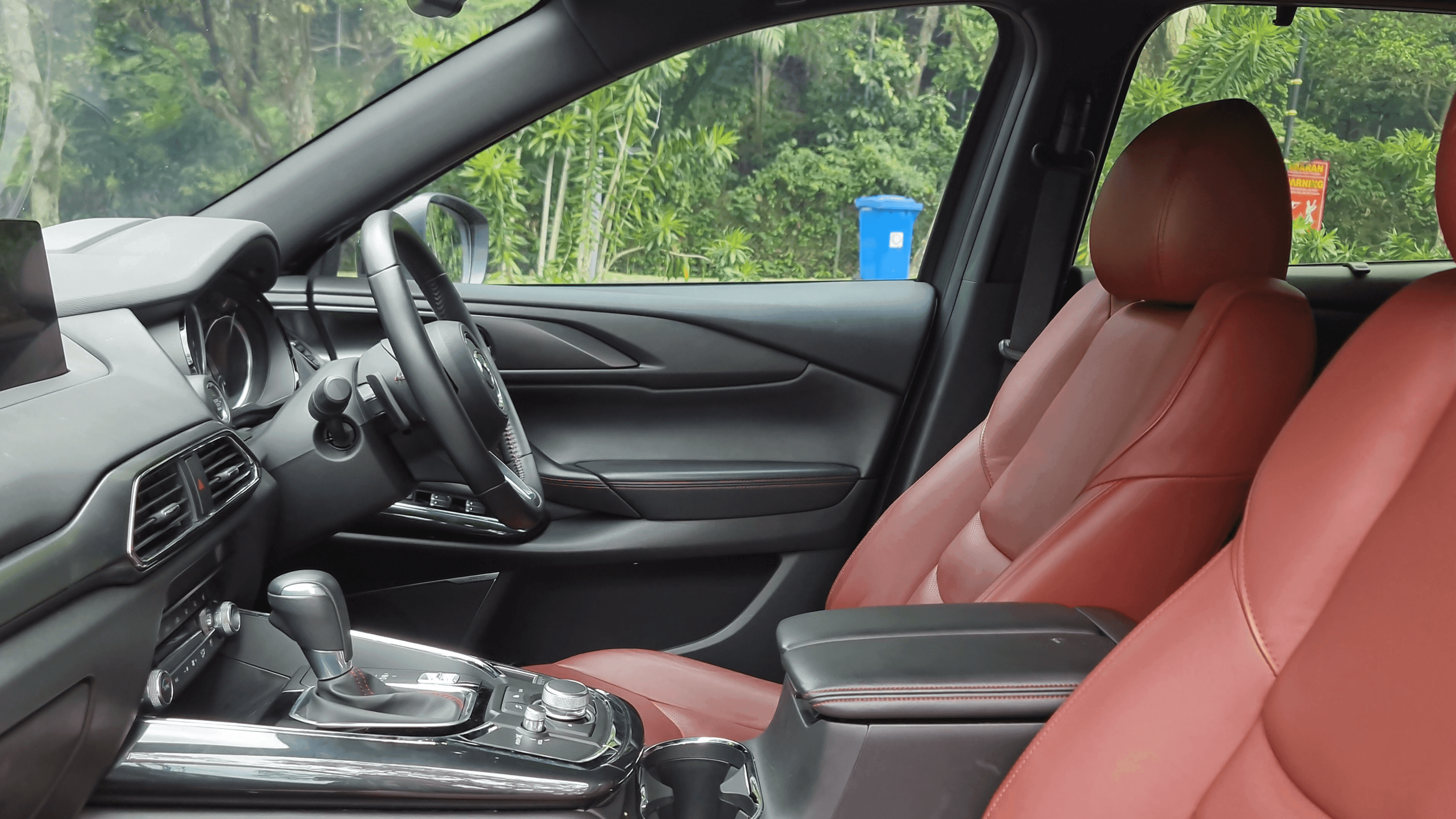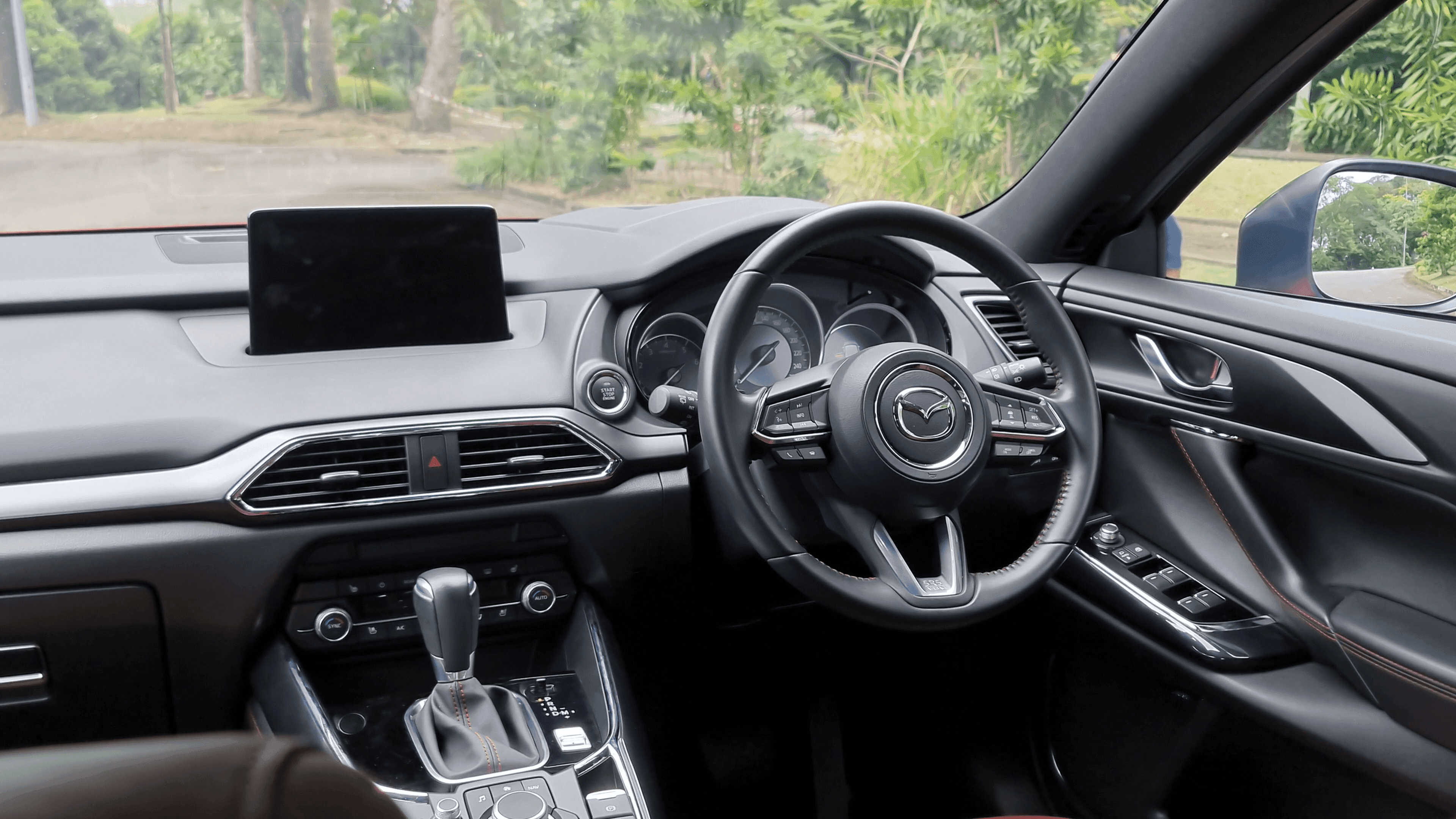 Darisegi fungsi dan ciri-ciri bahagian dalaman, berbeza dengan Mercedes yang lebih menjolok mata dengan skrin sentuh glossy sana sini, ambient lighting yang memukau, tetapi Mazda tetap dengan konsep mereka iaitu simple premium dan matang. Banyak sebenarnya ciri yang menarik pada CX-9 ini, tapi satu kegemaran saya adalah rotary dial knob pada center console tersebut, ianya lebih praktikal digunakan sewaktu memandu berbanding pad sesentuh pada model-model Mercedes.