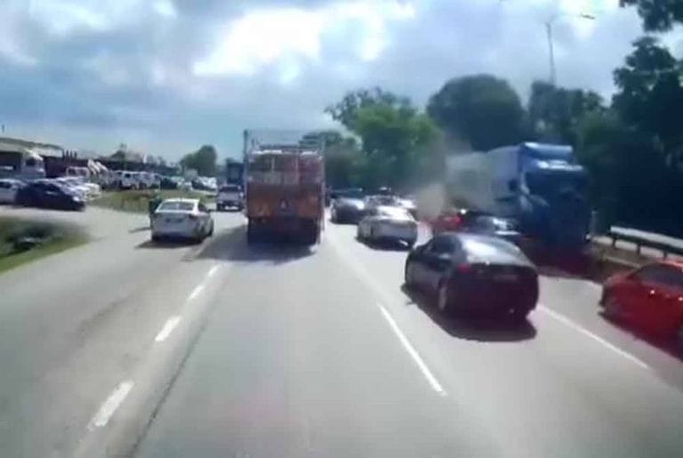 Turut tular adalah sebuah video kamera papan pemuka atau ‘dashcam’ berdurasi 35 saat yang memaparkan lori treler terbabit yang telah merempuh kenderaan lain di laluan bertentangan pada waktu kemuncak di jalan raya tersebut.