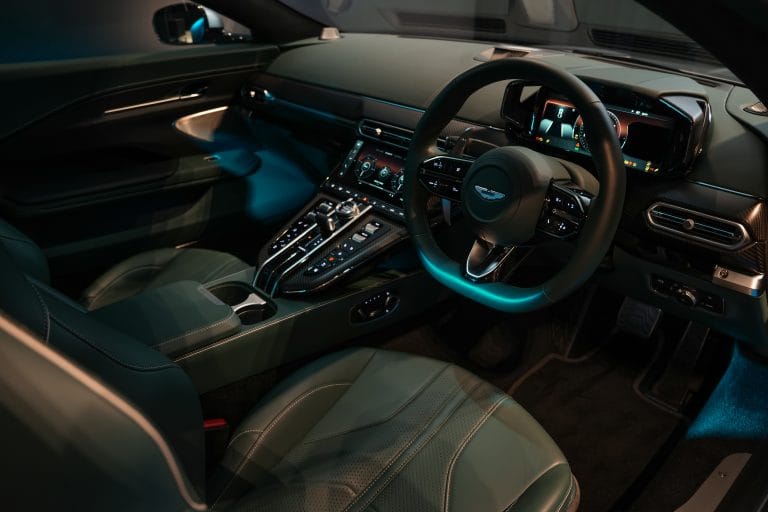 Beralih kepada ruang dalaman, kabin masih mengekalkan reka bentuk Aston Martin sedia ada yang menampilkan sistem infotainment bersaiz 10.25-inci dengan kawalan fizikal untuk pelbagai fungsi. Sistem ini turut menyokong Apple CarPlay tanpa wayar dan turut akan ditawarkan dengan Android Auto tidak lama lagi. Peningkatan audio pilihan juga disediakan, menampilkan sistem audio premium Bowers & Wilkins.