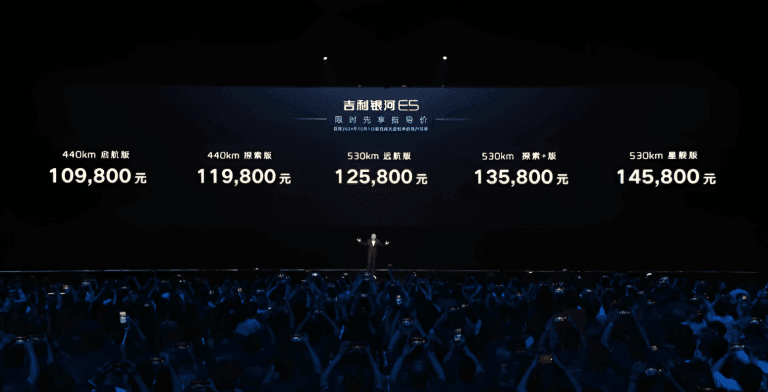 Geely telah melancarkan secara rasmi SUV elektriknya, Galaxy E5 di China yang penuh dengan teknologi canggih. SUV ini berharga antara 112,800 hingga 148,800 yuan (RM69,700 – RM92,000) tetapi sempena dengan pelancarannya, Geely menawarkan diskaun sebanyak 3000 yuan (RM1,850) kepada pelanggan yang membuat tempahan sebelum 1 Oktober ini.