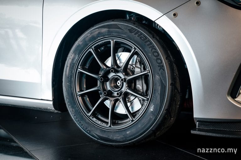 Kereta ini dilengkapi dengan roda aloi Raxer RP10X berukuran 15 inci dan tayar Hankook Ventus TD 195/55R15, serta brek Alcon dengan cakera berlubang.