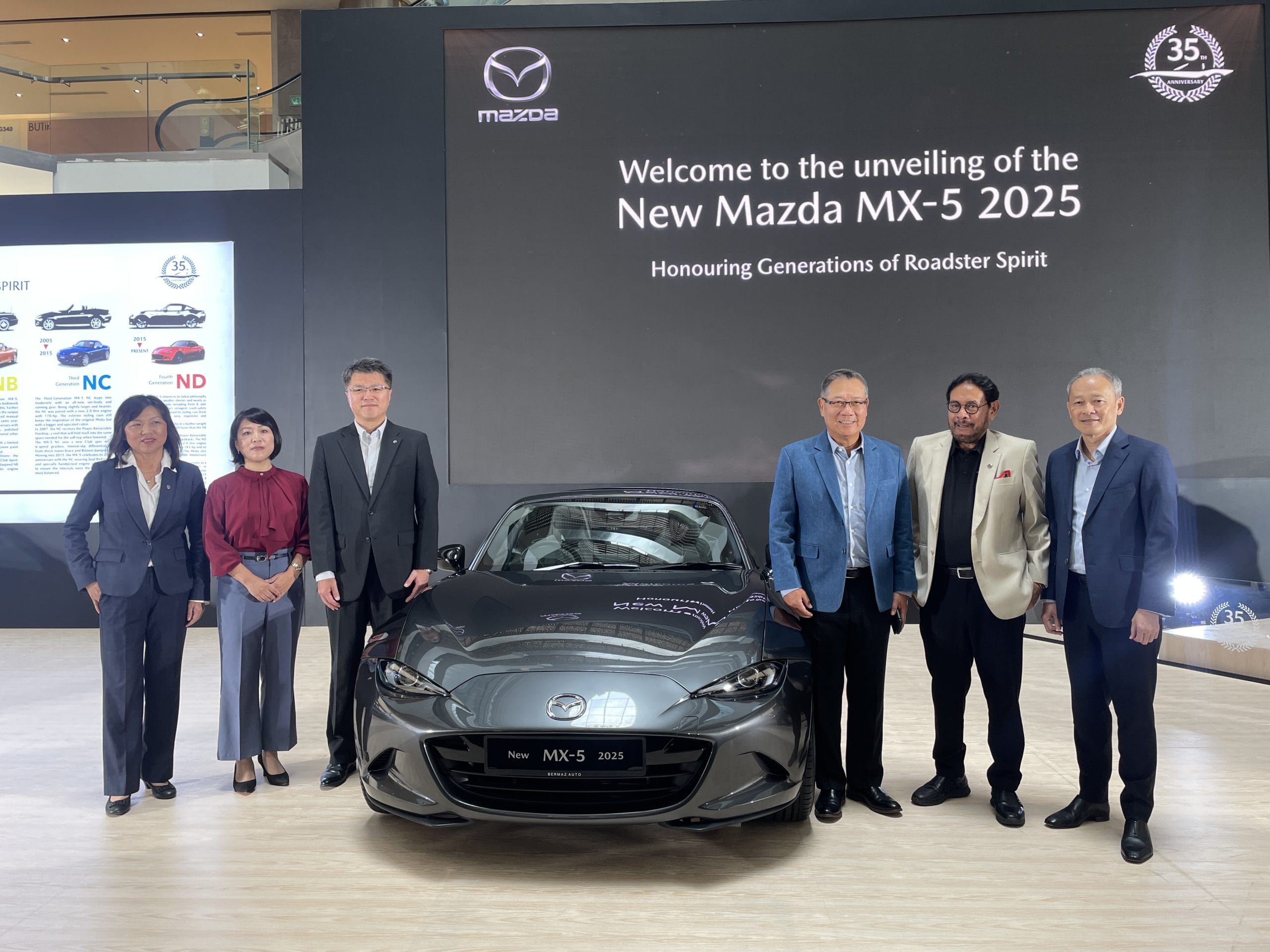 Bermaz Motor, pengedar eksklusif Mazda di Malaysia, telah memperkenalkan model edisi istimewa Mazda MX-5 35th Anniversary Edition sempena ulang tahun pengeluarannya yang ke-35 untuk pasaran Malaysia. Hanya 1,000 unit sahaja yang akan dikeluarkan di mana Malaysia hanya akan menerima kurang dari 5 unit.