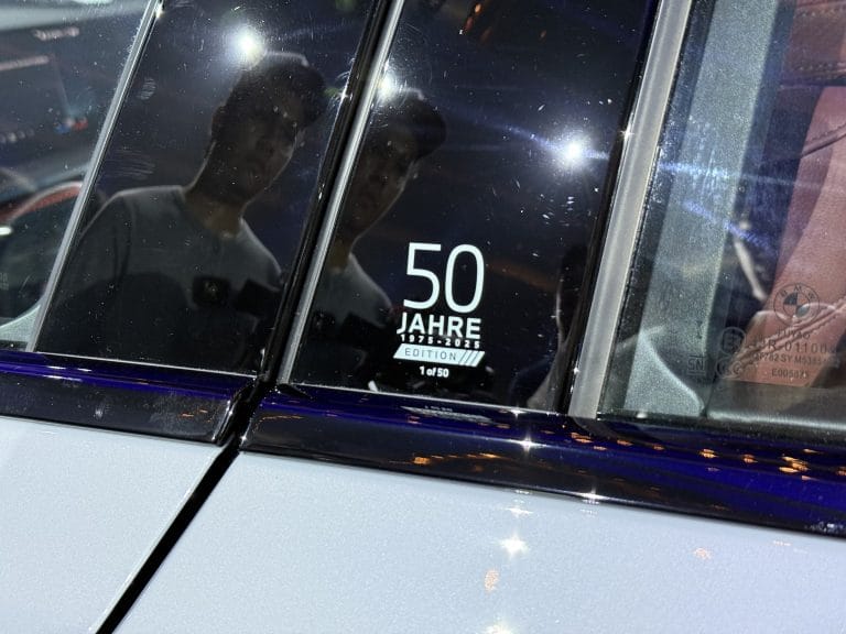 Menambah lagi keistimewaannya, model ini mempunyai lambang khas “50 Jahre Edition” pada pemegang cawan dan ukiran eksklusif pada tiang B di bahagian luar kenderaan, menandakan edisi terhad ini. 4 pilihan warna luaran sebagai pilihan iaitu Alpine White, Arctic Race Blue, M Brooklyn Grey dan Black Sapphire dengan warna hitam dan merah Tacora untuk ruang dalaman.