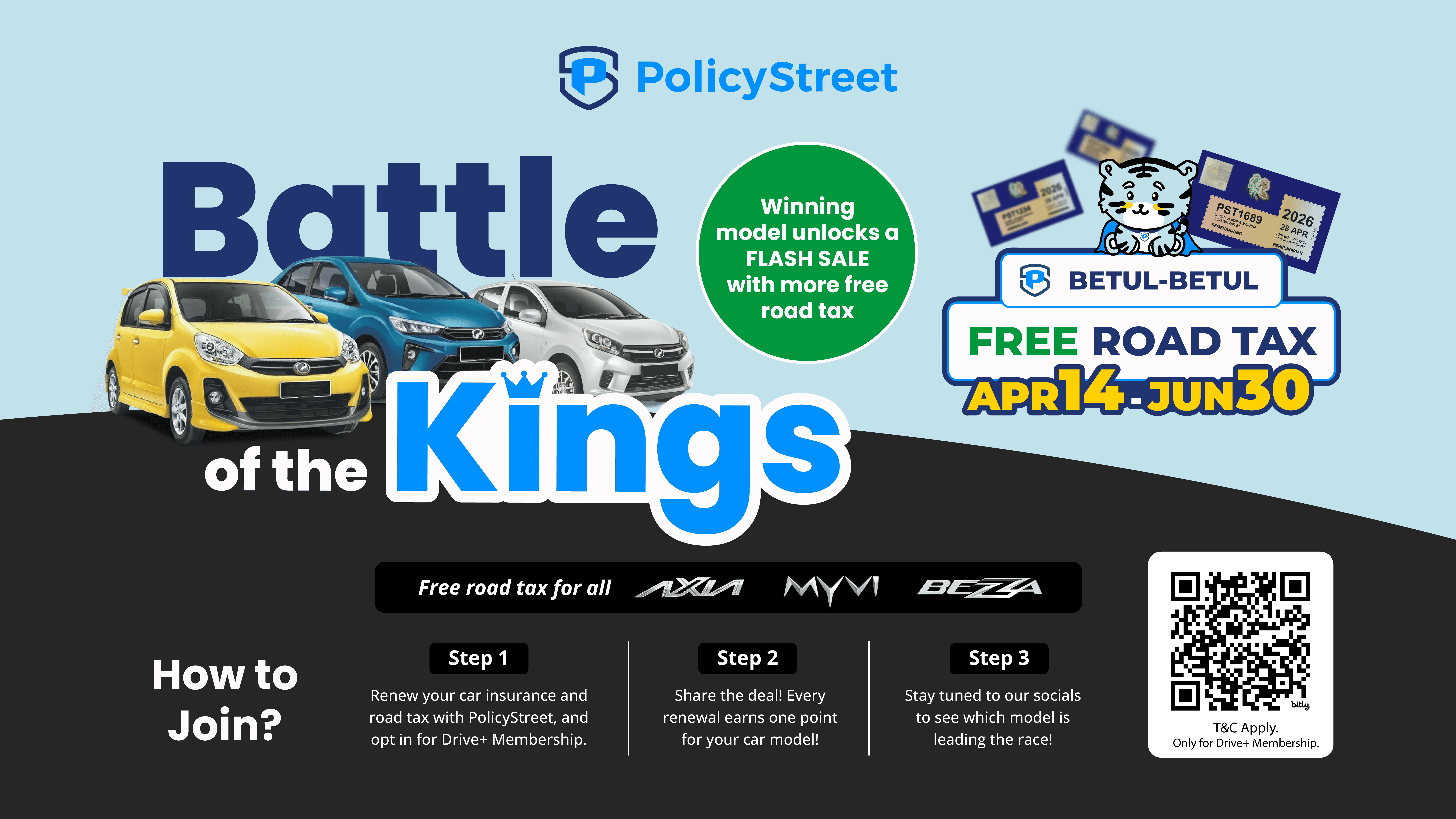 Tiga kereta paling popular di Malaysia, Perodua Myvi, Bezza, dan Axia sedang bersaing dalam kempen terbaru dari PolicyStreet yang dinamakan “Battle of the Kings”. Pertandingan ini bukan sahaja menyeronokkan, tetapi juga memberi peluang kepada rakyat Malaysia untuk berjimat ketika memperbaharui insurans kereta dan cukai jalan mereka.