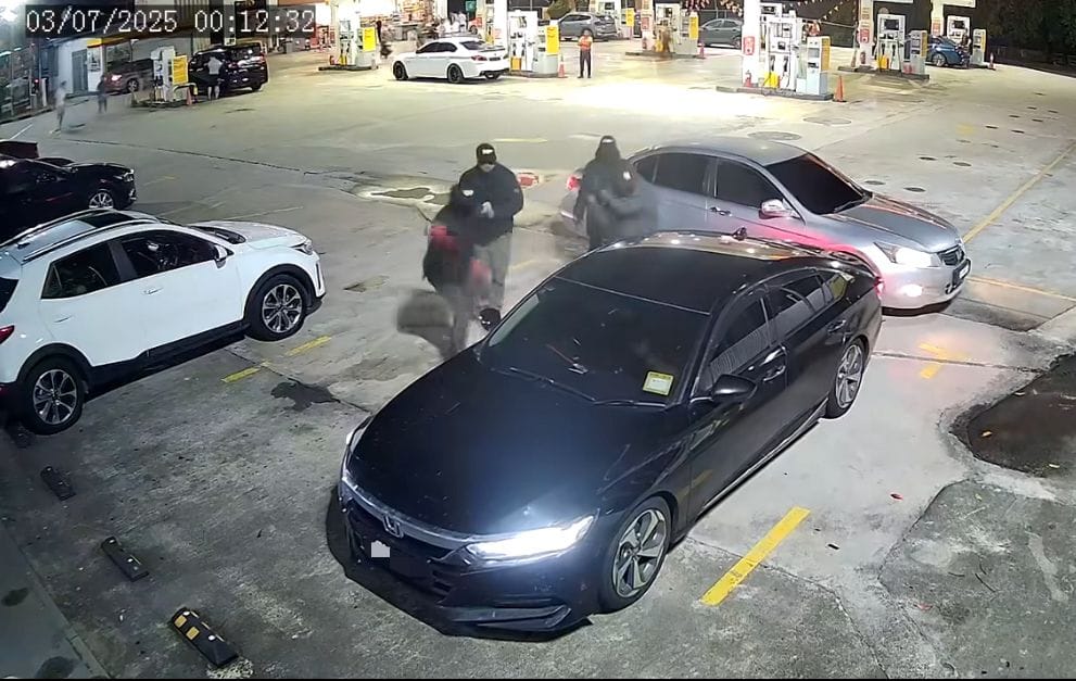 Insiden berkenaan dirakam oleh kamera CCTV di sebuah stesen minyak, dipercayai di sekitar Johor Bahru, dan video berdurasi dua minit itu kini tular di media sosial. Kejadian dikatakan berlaku sekitar jam 12.11 tengah malam semalam.