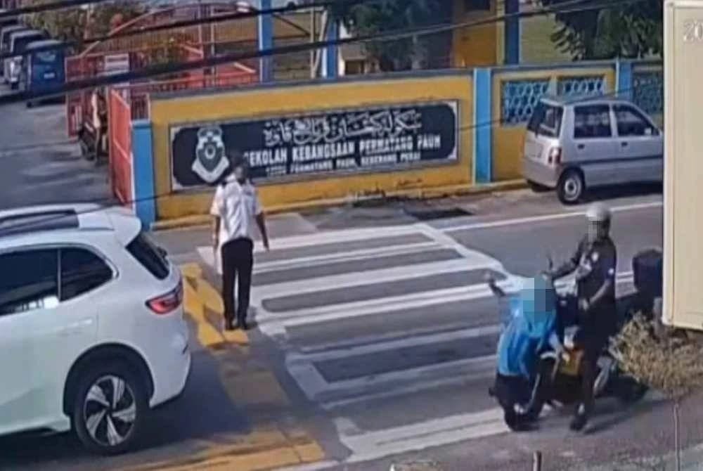 Terdahulu, rakaman CCTV berdurasi 42 saat menunjukkan dua murid melintas jalan sambil diiringi pengawal keselamatan. Namun, salah seorang murid dirempuh penunggang motosikal lelaki, yang kemudian melarikan diri tanpa menghulurkan sebarang bantuan. – Sinar Harian