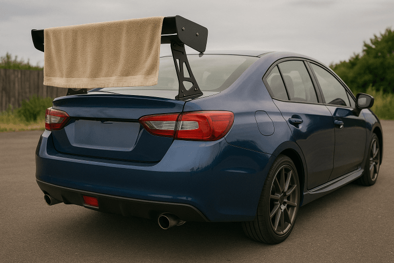 Akhirnya, aksesori paling “legend”, spoiler besar yang menutupi seluruh bahagian belakang kereta. Dari jauh, mungkin nampak seperti kereta lumba, tapi hakikatnya ramai yang hanya mampu tersenyum pahit melihatnya.