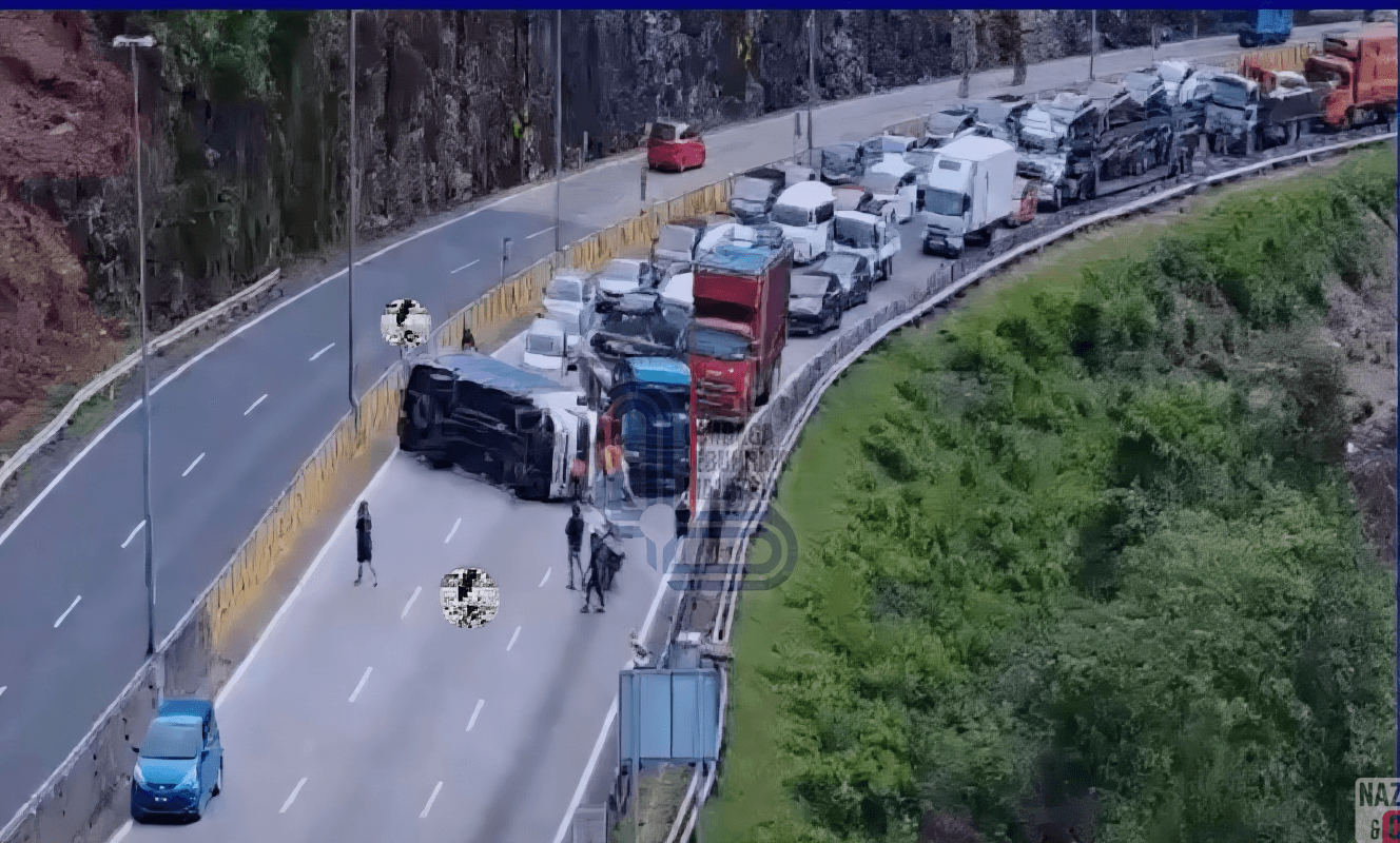 Menerusi rakaman televisyen litar tertutup (CCTV) yang dikongsikan, kenderaan berat itu dilihat melintang di tengah laluan sehingga menyebabkan kenderaan lain terpaksa memperlahankan pemanduan.