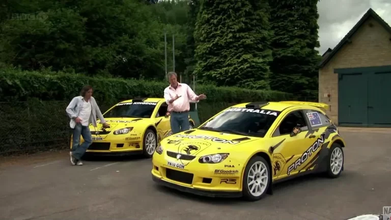 Kalau versi UK pula, Proton naik kelas terus. Dalam satu episod ikonik, dua buah Proton Satria Neo S2000 disediakan khas oleh Mellors Elliot Motorsport (MEM) untuk perlumbaan “friendly” antara pasukan Top Gear UK dan Top Gear Australia. Clarkson & May masa tu memang terkejut dengan prestasi Satria yang laju, stabil, dan nampak “proper rally car”. Nama Proton pun terus meniti bibir peminat auto global lepas episod tu keluar.