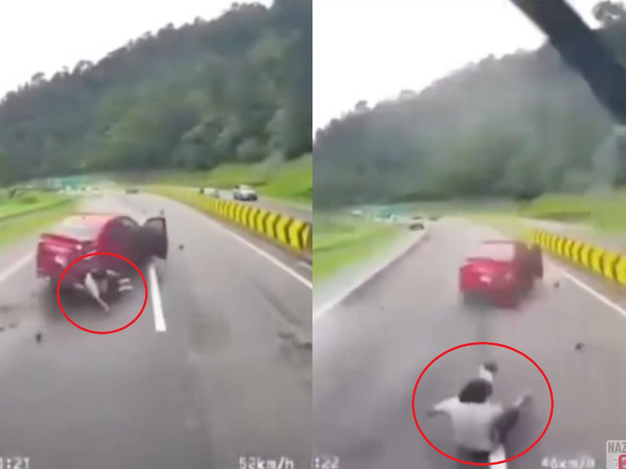 Menerusi rakaman kamera papan pemuka (dashcam) yang tular di media sosial, lelaki terbabit pada mulanya memandu di lorong kedua kanan sebelum keretanya secara tiba-tiba terbabas ke kiri dan merempuh penghadang besi. Ketika kejadian, tubuh pemandu itu terhumban keluar dari tempat duduk, manakala keretanya terus meluncur sendiri ke depan lalu menghentam penghadang di lorong kanan.