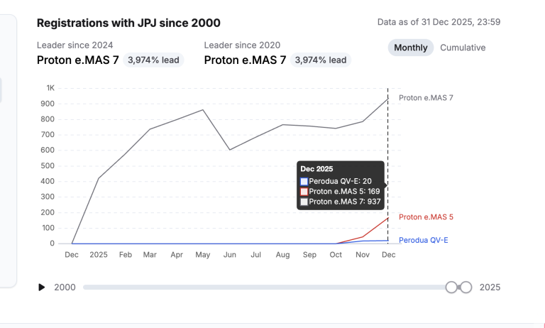 • Perodua QV-E: Hanya 20 unit pendaftaran di seluruh negara pada bulan Disember 2025.