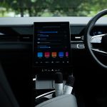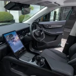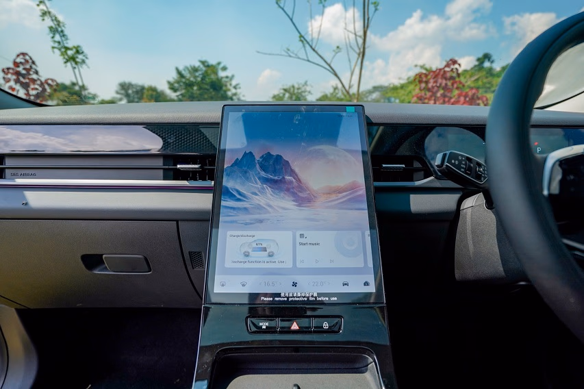 JAECOO J5 dilengkapi dengan skrin infotainment bersaiz 13.2 inci dengan resolusi 2K, yang berfungsi sebagai pusat kawalan utama kenderaan. Paparan besar ini memudahkan interaksi pengguna serta memberikan visual yang jelas untuk navigasi dan hiburan.
