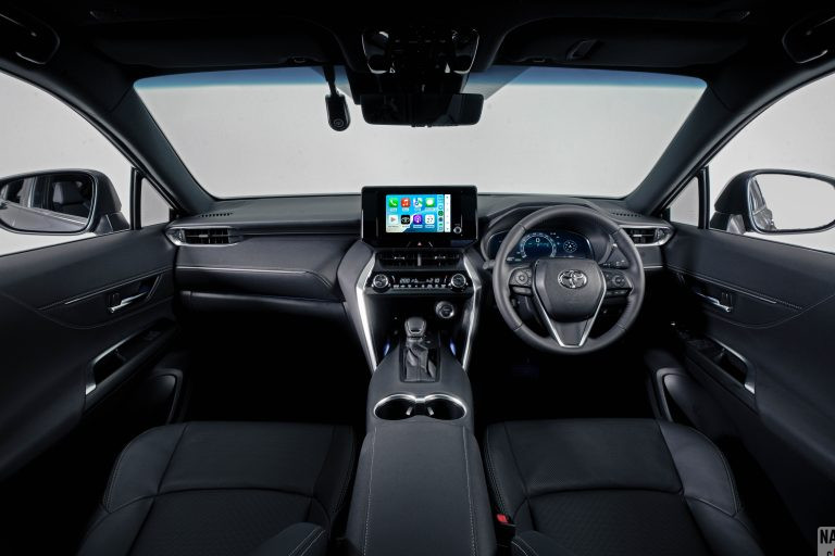 Harrier HEV ditawarkan dalam tiga warna iaitu Platinum White Pearl, Grey Metallic dan Precious Black, digandingkan dengan kemasan dalaman berwarna hitam.